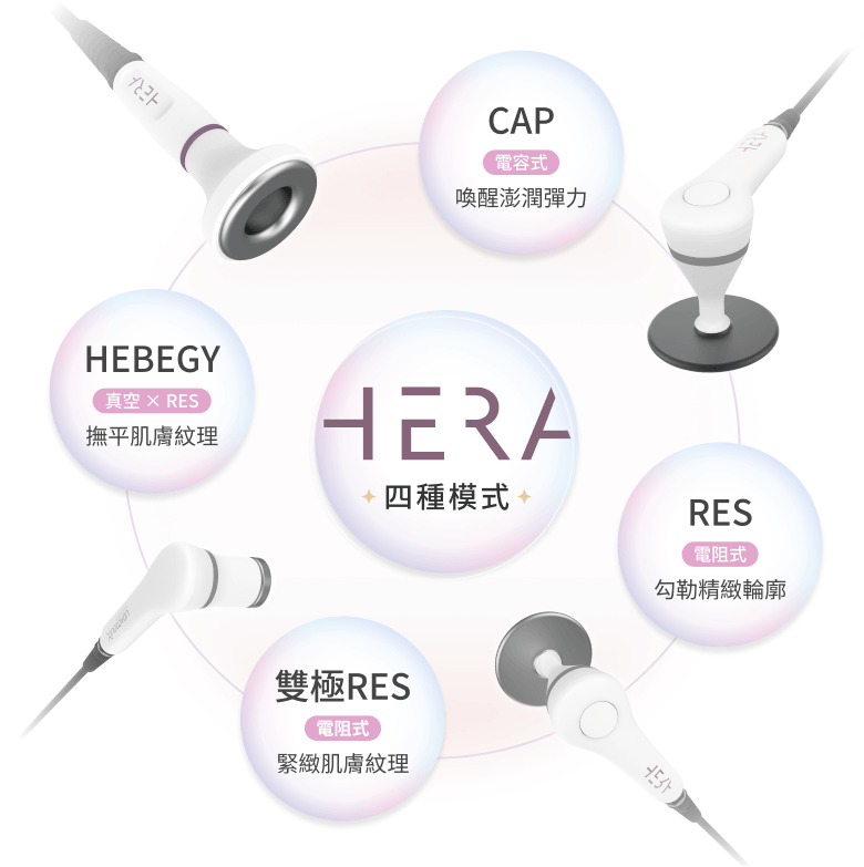 HERA 擁有多達 18款探頭,依照臉部、身體、頭皮與細緻部位設計不同尺寸與形狀,
